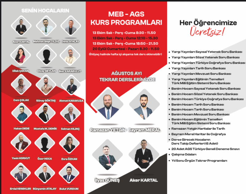 TÜRKİYE'NİN KPSS ALANINDA EN ÇOK KAZANDIRAN EĞİTİM KURUMUNDA UYGULANAN KPSS-ÖĞRETMENLİK KURS PROGRAMLARI Ders Süreleri Programda yer alan ders saati süreleri aşağıda belirtilmiştir. Genel Kültür Genel Yetenek Matematik100 Saat Tarih90 Saat Vatandaşlık40 Saat Geometri15 Saat Dönem Sonu Kampı45 Saat Türkçe40 Saat Coğrafya40 Saat Toplam370 Saat Eğitim Bilimleri 80 Saat Toplam80 Saat #kpss #kpsseğitim #öabt #öabt2024 #mebags #ags #akademiyegiriş